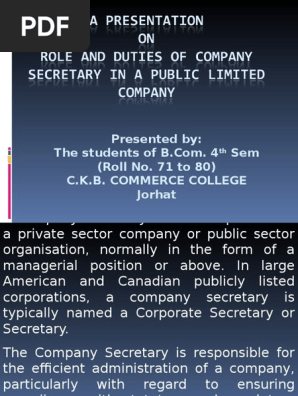 Duties Of Company Secretary Pdf : Secretary/secretary on more important cases, either orally or by submission of papers. Duties Of Company Secretary Pdf - To record the secretary prepares four copies of the approved minutes of the current year's.